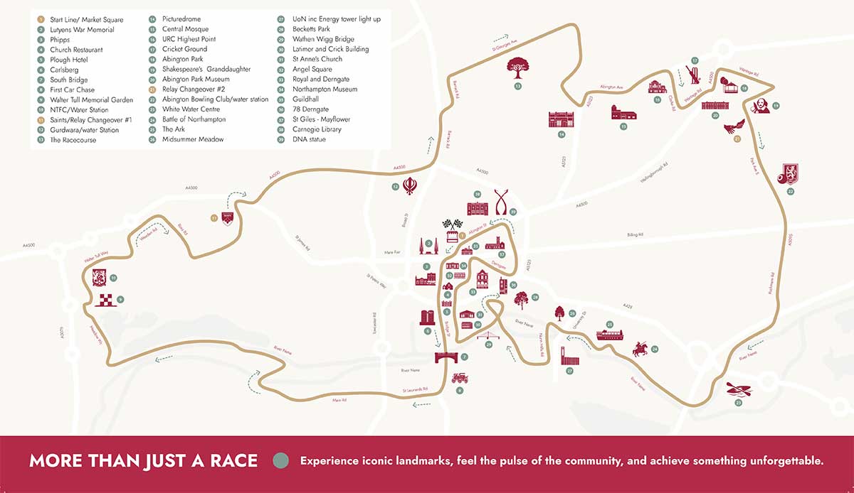 Northampton’s rich history and vibrant culture come alive on race day. As you run, you’ll move through centuries of stories, strength, and renewal.